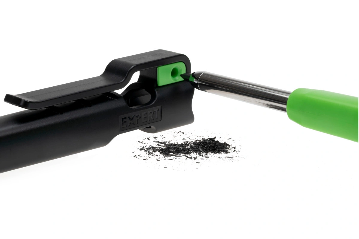 Markierstift inkl. 1 schwarzen Mine, zur Beschriftung auf nahezu allen Oberflächen. Minenautomatik auf Knopfdruck rein/raus, durch den integrierten Spitzer dünneund dicke Striche. Auf glatten Untergründen mit einem feuchten Lappen entfernbar, Hülle mit Gürtelclip ist der EXPERT DRY Stift für sichere Aufbewahrung, nachfüllbar. Geeignet für nahezu alle Oberflächen. Praktischer Markierstift mit Minenautomatik. Einfach nachfüllbar. In der Kappe ist ein Spitzer integriert.